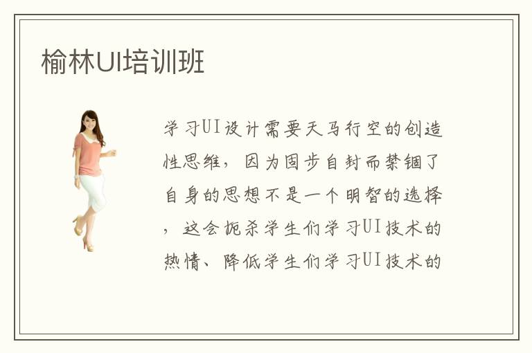 學習UI設計需要天馬行空的創(chuàng)造性思維,因為固步自封而禁錮了自身的思想不是一個明智的選擇,這會扼殺學生們學習UI技術(shù)的熱情、降低學生們學習UI技術(shù)的效果。榆林UI培訓班旨在培養(yǎng)學生邏輯思維和創(chuàng)新思維,這方面更具有針對性。榆林UI設計工作者薪資待遇好不好?榆林UI培訓班的老師是很專業(yè)的,也屬于高薪工作者。榆林地區(qū)哪家UI設計培訓機構(gòu)專業(yè)?