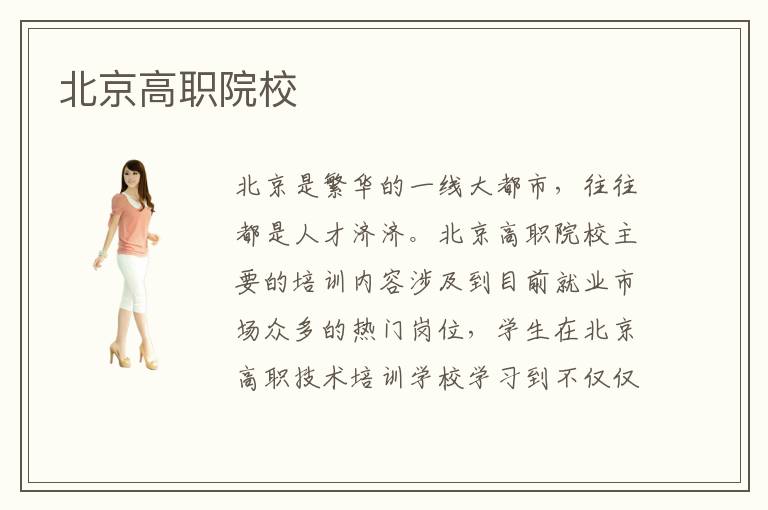 北京是繁華的一線大都市,往往都是人才濟(jì)濟(jì)。北京高職院校主要的培訓(xùn)內(nèi)容涉及到目前就業(yè)市場(chǎng)眾多的熱門崗位,學(xué)生在北京高職技術(shù)培訓(xùn)學(xué)校學(xué)習(xí)到不僅僅是理論方面的知識(shí),還有一些實(shí)際運(yùn)用的技能。北京高職院校有哪些比較優(yōu)秀的可推薦?北京高職技術(shù)學(xué)校不乏一些質(zhì)量高的優(yōu)秀學(xué)府,能給學(xué)生真正意義上的輔導(dǎo)。北京高職技術(shù)培訓(xùn)學(xué)校教學(xué)宗旨很專一。