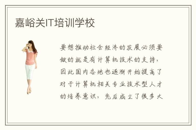 要想推動社會經(jīng)濟的發(fā)展必須要做的就是有計算機技術的支持,因此國內(nèi)各地也逐漸開始提高了對于計算機相關專業(yè)技術型人才的培養(yǎng)意識,先后成立了很多大大小小的計算機專業(yè)培訓學校。嘉峪關IT培訓學校就是嘉峪關近年來剛剛成立的一所計算機培訓學校,通過專業(yè)的計算機教學培訓以及合理的專業(yè)課程安排,使得嘉峪關IT培訓學校在校學員可以擁有最高質(zhì)量的專業(yè)教學。