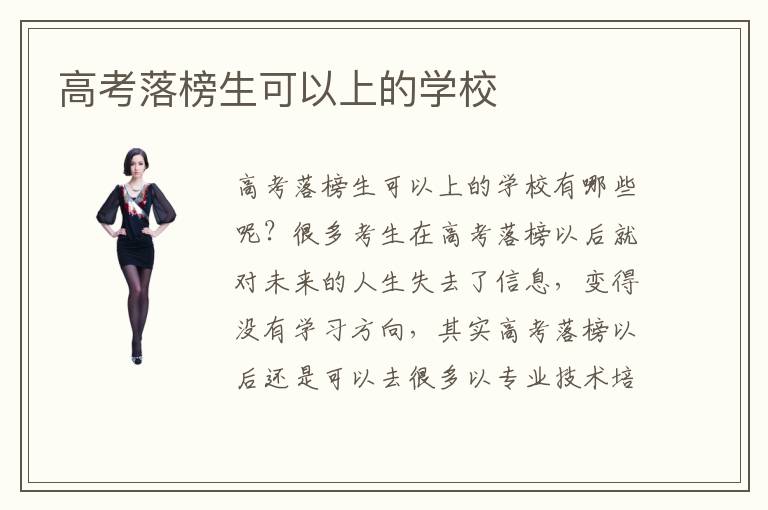 高考落榜生可以上的學(xué)校有哪些呢?很多考生在高考落榜以后就對(duì)未來的人生失去了信息,變得沒有學(xué)習(xí)方向,其實(shí)高考落榜以后還是可以去很多以專業(yè)技術(shù)培訓(xùn)為主的學(xué)校。這些學(xué)校相對(duì)于名牌大學(xué)來說專業(yè)教學(xué)實(shí)力并不遜色,只有掌握了正確的學(xué)習(xí)方式,只要做好了學(xué)好這門專業(yè)的決心并付出努力,就一定可以又快又好的學(xué)會(huì)專業(yè)技術(shù)的,而專業(yè)技術(shù)的掌握是未來就業(yè)工作的關(guān)鍵。