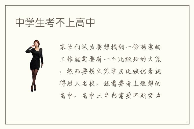家長(zhǎng)們認(rèn)為要想找到一份滿意的工作就需要有一個(gè)比較好的文憑,然而要想文憑學(xué)歷比較優(yōu)秀就得進(jìn)入名校,就需要考上理想的高中,高中三年也需要不斷努力學(xué)習(xí)。那么中學(xué)生考不上高中考不上高中怎么辦呢?要想找到一份滿意的工作,文憑學(xué)歷只是一部分,擁有高超的專業(yè)技術(shù)也是很重要的一部分。因此考不上高中的學(xué)生就必須要觀察社會(huì)的發(fā)展趨勢(shì),選擇一門適合自己并且發(fā)展較好得專業(yè)進(jìn)行學(xué)習(xí)。