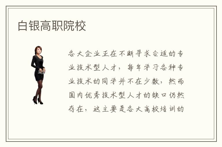 各大企業(yè)正在不斷尋求合適的專業(yè)技術(shù)型人才,每年學(xué)習(xí)各種專業(yè)技術(shù)的同學(xué)并不在少數(shù),然而國內(nèi)優(yōu)秀技術(shù)型人才的缺口仍然存在,這主要是各大高校培訓(xùn)的技術(shù)型人才并不注重他們的實(shí)踐能力培養(yǎng),以至于這些學(xué)員們沒有足夠的實(shí)踐項目經(jīng)驗,也就達(dá)不到企業(yè)的用人標(biāo)準(zhǔn)。白銀高職院校是比較注重對于學(xué)員們實(shí)踐培訓(xùn)的,因此白銀高職院校的學(xué)員就業(yè)成功率還是比較高的。