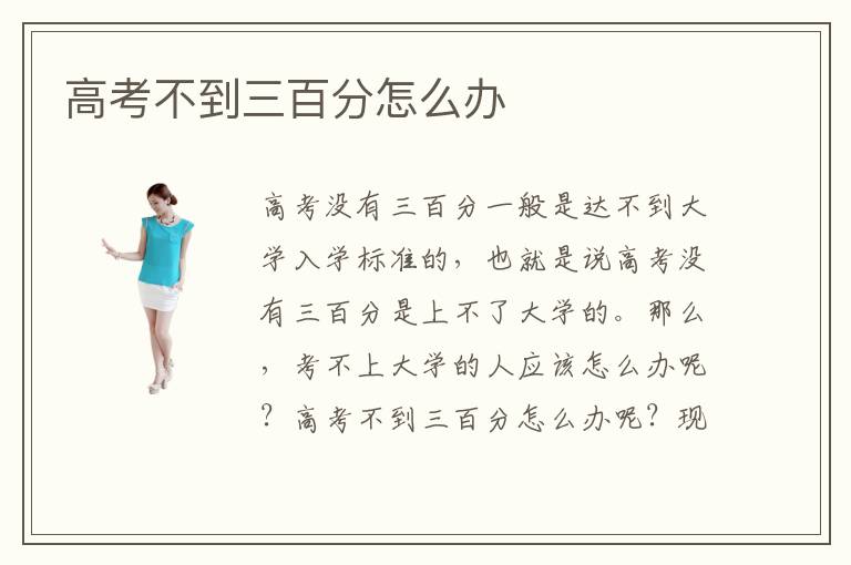 高考沒有三百分一般是達(dá)不到大學(xué)入學(xué)標(biāo)準(zhǔn)的,也就是說高考沒有三百分是上不了大學(xué)的。那么,考不上大學(xué)的人應(yīng)該怎么辦呢?高考不到三百分怎么辦呢?現(xiàn)在各大企業(yè)更看中的是員工的專業(yè)技術(shù)水平,因此掌握一門專業(yè)技術(shù)是未來就業(yè)的根本保障,掌握好一門專業(yè)技術(shù)也是很有必要的。高考不到三百分的同學(xué)可以根據(jù)自己的情況以及未來社會的發(fā)展形勢,選擇一門合適的專業(yè)進(jìn)行學(xué)習(xí)。