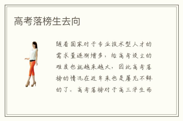 隨著國家對(duì)于專業(yè)技術(shù)型人才的需求量逐漸增多,給高考設(shè)立的難度也就越來越大,因此高考落榜的情況在近年來也是屢見不鮮的了。高考落榜對(duì)于高三學(xué)生而言是一個(gè)巨大的打擊,在巨大的打擊下很多同學(xué)會(huì)變得迷失自、沒有目標(biāo),變得自暴自棄起來。而有些同學(xué)卻開辟了另一種道路,那么你知道這些高考落榜生去向是什么嗎?你知道應(yīng)該怎樣拯救高考落榜帶來的失敗陰影呢?