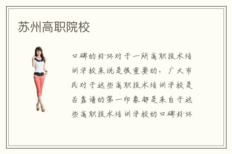 口碑的好壞對于一所高職技術(shù)培訓(xùn)學(xué)校來說是很重要的,廣大市民對于這些高職技術(shù)培訓(xùn)學(xué)校是否靠譜的第一印象都是來自于這些高職技術(shù)培訓(xùn)學(xué)校的口碑好壞。那么,蘇州高職院校的口碑怎么樣呢?蘇州高職院校擁有國內(nèi)一流的專業(yè)課程教學(xué)團隊,在這樣靠譜的教學(xué)團隊帶領(lǐng)下,學(xué)好專業(yè)技術(shù)也并不困難了,蘇州高職院校在校學(xué)員一定可以更快更好的完成相關(guān)專業(yè)技術(shù)的學(xué)習(xí)。