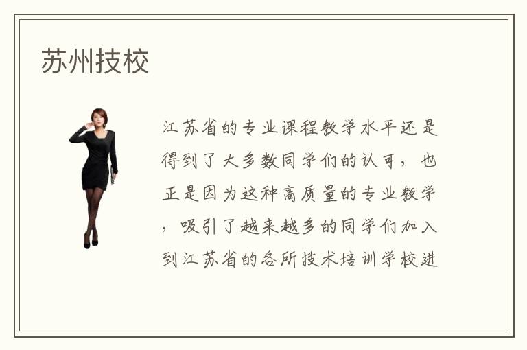 江蘇省的專業(yè)課程教學(xué)水平還是得到了大多數(shù)同學(xué)們的認(rèn)可,也正是因為這種高質(zhì)量的專業(yè)教學(xué),吸引了越來越多的同學(xué)們加入到江蘇省的各所技術(shù)培訓(xùn)學(xué)校進(jìn)行專業(yè)課程的學(xué)習(xí)。那么,蘇州技校中哪所比較靠譜呢?蘇州在大家的印象中還是一個古色古香的城市,隨著社會科技水平的不斷進(jìn)步,蘇州也開始了對于同學(xué)們專業(yè)技術(shù)的培訓(xùn),開展了各所大大小小的專業(yè)技術(shù)培訓(xùn)學(xué)校。