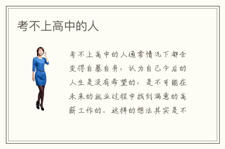 考不上高中的人通常情況下都會變得自暴自棄,認(rèn)為自己今后的人生是沒有希望的,是不可能在未來的就業(yè)過程中找到滿意的高薪工作的。這樣的想法其實(shí)是不對的,就業(yè)工作的好壞是與專業(yè)技術(shù)水平存在直接關(guān)聯(lián)的,并不會因為大學(xué)的文憑好壞而產(chǎn)生很大的影響,那么,考不上高中的人應(yīng)該怎么辦呢?最重要的就是調(diào)整好自己的心態(tài),然后去尋找一個學(xué)習(xí)方向進(jìn)行專業(yè)課程的學(xué)習(xí)。
