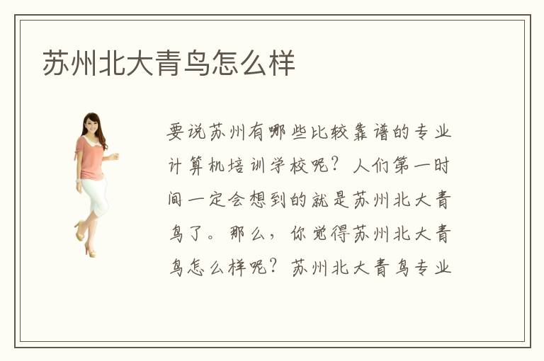 要說蘇州有哪些比較靠譜的專業(yè)計(jì)算機(jī)培訓(xùn)學(xué)校呢?人們第一時(shí)間一定會(huì)想到的就是蘇州北大青鳥了。那么,你覺得蘇州北大青鳥怎么樣呢?蘇州北大青鳥專業(yè)計(jì)算機(jī)培訓(xùn)學(xué)校是北大青鳥專業(yè)計(jì)算機(jī)培訓(xùn)學(xué)校在蘇州開設(shè)的分校區(qū),堅(jiān)持著北大青鳥“一切都以學(xué)員們的未來就業(yè)為基礎(chǔ)”的教學(xué)理念,進(jìn)行學(xué)員們的IT專業(yè)培訓(xùn)??偟膩碚f,蘇州北大青鳥怎么樣是一所各方面都具有實(shí)力的培訓(xùn)學(xué)校。