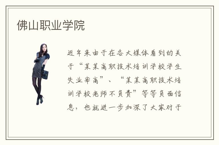近年來由于在各大媒體看到的關(guān)于“某某高職技術(shù)培訓(xùn)學(xué)校學(xué)生失業(yè)率高”、“某某高職技術(shù)培訓(xùn)學(xué)校老師不負(fù)責(zé)”等等負(fù)面信息,也就進(jìn)一步加深了大家對于高職技術(shù)培訓(xùn)學(xué)校的偏見。佛山職業(yè)學(xué)院評價怎么樣呢?大家對于佛山職業(yè)學(xué)院的評價一般分為兩種,一種是對于佛山職業(yè)學(xué)院不熟悉的,這些評價自然就是以“不滿意”為主,還有一些是比較熟悉佛山職業(yè)學(xué)院的,因此他們對于佛山職業(yè)學(xué)院的評價還是給予肯定的。