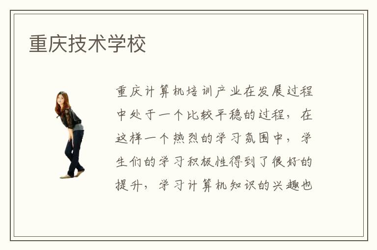 重慶計算機(jī)培訓(xùn)產(chǎn)業(yè)在發(fā)展過程中處于一個比較平穩(wěn)的過程,在這樣一個熱烈的學(xué)習(xí)氛圍中,學(xué)生們的學(xué)習(xí)積極性得到了很好的提升,學(xué)習(xí)計算機(jī)知識的興趣也得到了激發(fā)。重慶技術(shù)學(xué)校怎么樣?重慶技術(shù)培訓(xùn)學(xué)校的主要教學(xué)內(nèi)容是很豐富多彩的,學(xué)校注重對學(xué)生實踐知識的培訓(xùn),也注重對學(xué)生動手能力的培養(yǎng)。重慶職業(yè)技術(shù)學(xué)校有什么優(yōu)勢呢?