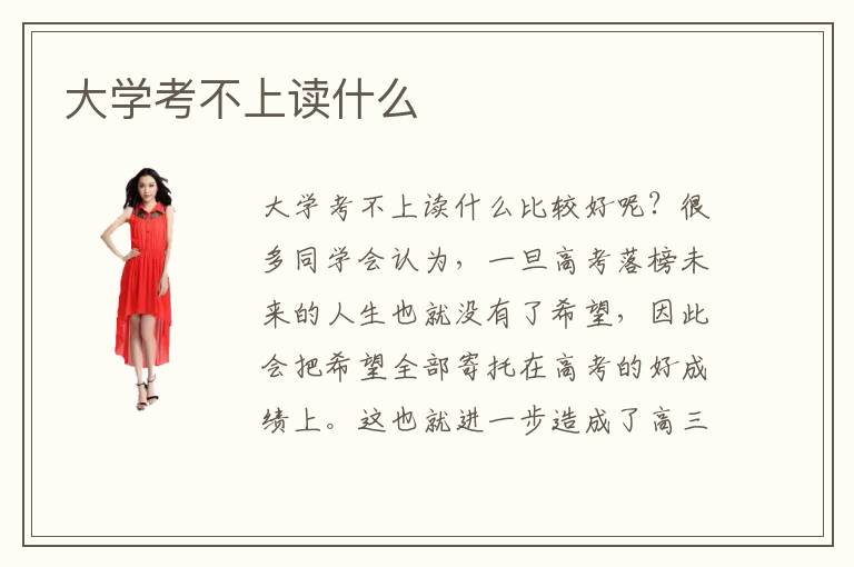 大學(xué)考不上讀什么比較好呢?很多同學(xué)會認(rèn)為,一旦高考落榜未來的人生也就沒有了希望,因此會把希望全部寄托在高考的好成績上。這也就進(jìn)一步造成了高三考生巨大的心理壓力,這也就是很多高考學(xué)生在高考過程中發(fā)揮失常的原因之一?,F(xiàn)在企業(yè)更看中的是求職者的專業(yè)技術(shù)水平,對于學(xué)歷并沒有過硬的要求,因此考不上大學(xué)的同學(xué)學(xué)好專業(yè)技術(shù)才是關(guān)鍵,大家可以選擇一些靠譜的專業(yè)技術(shù)培訓(xùn)學(xué)校進(jìn)行學(xué)習(xí)。