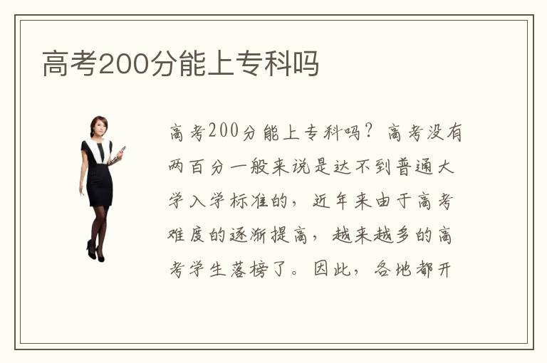 高考200分能上??茊??高考沒有兩百分一般來說是達(dá)不到普通大學(xué)入學(xué)標(biāo)準(zhǔn)的,近年來由于高考難度的逐漸提高,越來越多的高考學(xué)生落榜了。因此,各地都開始成立了很多專業(yè)的技術(shù)培訓(xùn)學(xué)校,這些??茖W(xué)校是以專業(yè)技術(shù)培訓(xùn)為重點(diǎn)的,在專業(yè)課程的教學(xué)方面是很有經(jīng)驗(yàn)的,高考只有200分左右的同學(xué)是可以選擇這些比較可靠的??茖W(xué)校進(jìn)行學(xué)習(xí)的。