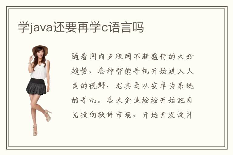 隨著國內(nèi)互聯(lián)網(wǎng)不斷盛行的大好趨勢,各種智能手機(jī)開始進(jìn)入人類的視野,尤其是以安卓為系統(tǒng)的手機(jī)。各大企業(yè)紛紛開始把目光投向軟件市場,開始開發(fā)設(shè)計各種小型的手機(jī)應(yīng)用以及游戲等等,這時候就需要大量的高端java軟件開發(fā)設(shè)計工程師。java作為安卓系統(tǒng)最常用的編程語言,受到了越來越多工程師的選擇。那么,學(xué)java還要再學(xué)c語言嗎?