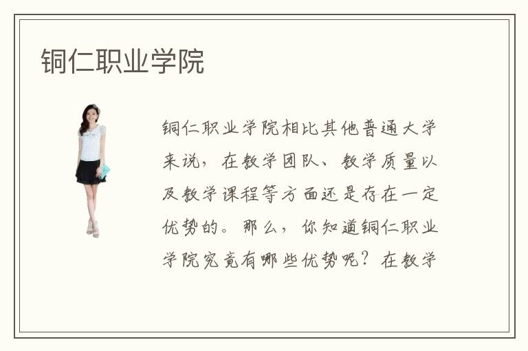 銅仁職業(yè)學院相比其他普通大學來說,在教學團隊、教學質(zhì)量以及教學課程等方面還是存在一定優(yōu)勢的。那么,你知道銅仁職業(yè)學院究竟有哪些優(yōu)勢呢?在教學團隊方面,銅仁職業(yè)學院擁有國內(nèi)一流的師資團隊,因此能提供給學員們更可靠的專業(yè)教學。在專業(yè)課程教學方面,銅仁職業(yè)學院會根據(jù)市場對于。相關專業(yè)的用人需求變化在不斷調(diào)整專業(yè)課程,以便提供給學員們更大的保障。
