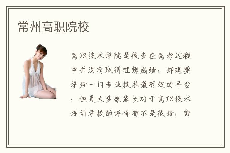 高職技術(shù)學(xué)院是很多在高考過(guò)程中并沒(méi)有取得理想成績(jī),卻想要學(xué)好一門專業(yè)技術(shù)最有效的平臺(tái),但是大多數(shù)家長(zhǎng)對(duì)于高職技術(shù)培訓(xùn)學(xué)校的評(píng)價(jià)都不是很好,常州高職院校也并不例外。其實(shí)常州高職院校在專業(yè)課程安排方面還是比較用心的,只要根據(jù)常州高職院校老師的步驟努力學(xué)習(xí)專業(yè)技術(shù)自然是可以又快又好完成相關(guān)專業(yè)學(xué)習(xí)的,常州高職院的專業(yè)技術(shù)培訓(xùn)效果也是大家有目共睹的。