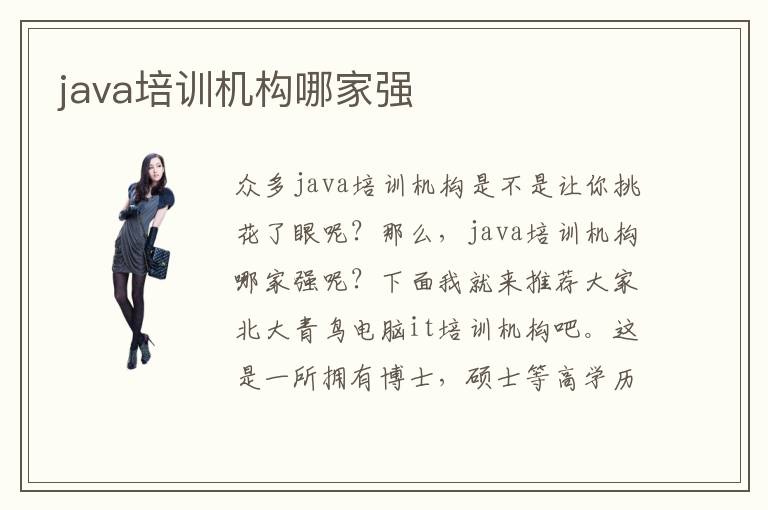 眾多java培訓(xùn)機(jī)構(gòu)是不是讓你挑花了眼呢?那么,java培訓(xùn)機(jī)構(gòu)哪家強(qiáng)呢?下面我就來推薦大家北大青鳥電腦it培訓(xùn)機(jī)構(gòu)吧。這是一所擁有博士,碩士等高學(xué)歷教師的專業(yè)計算機(jī)培訓(xùn)機(jī)構(gòu),它致力于培養(yǎng)大批it精英人員,為各大企業(yè)送去互聯(lián)網(wǎng)專業(yè)人才。目前已經(jīng)與數(shù)百家企業(yè)合作,也為即將畢業(yè)的學(xué)員開設(shè)了面試培訓(xùn)課程,學(xué)員完全不用擔(dān)心畢業(yè)后的就業(yè)問題。