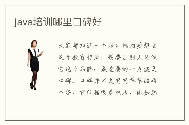大家都知道一個(gè)培訓(xùn)機(jī)構(gòu)要想立足于教育行業(yè),想要讓別人記住它這個(gè)品牌,最重要的一點(diǎn)就是口碑??诒⒉皇呛?jiǎn)簡(jiǎn)單單的兩個(gè)字,它包括很多地方,比如說(shuō)它的教學(xué)質(zhì)量過(guò)不過(guò)關(guān),校風(fēng)校紀(jì)好不好,就業(yè)率高不高等等,這一系列的問(wèn)題都做到完美,那口碑就一定不賴(lài)了。那么,java培訓(xùn)哪里口碑好呢?培訓(xùn)機(jī)構(gòu)口碑好的有哪些呢?下面我就來(lái)舉例一一說(shuō)明吧!