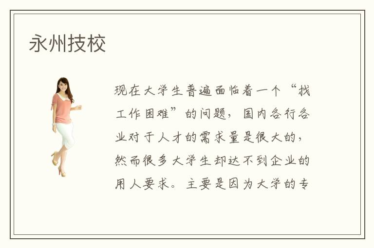 現(xiàn)在大學生普遍面臨著一個“找工作困難”的問題,國內各行各業(yè)對于人才的需求量是很大的,然而很多大學生卻達不到企業(yè)的用人要求。主要是因為大學的專業(yè)課程教學主要是以理論知識講解為主的,大學生們是比較缺乏實踐項目操作經(jīng)驗的。永州技校針對這一現(xiàn)狀,提出了很好的解決方法。永州技校與很多企業(yè)都有合作,會在與企業(yè)實踐項目推出的同時鼓勵學員們參與到項目過程中去,這樣也有助于企業(yè)找到合適的人才。