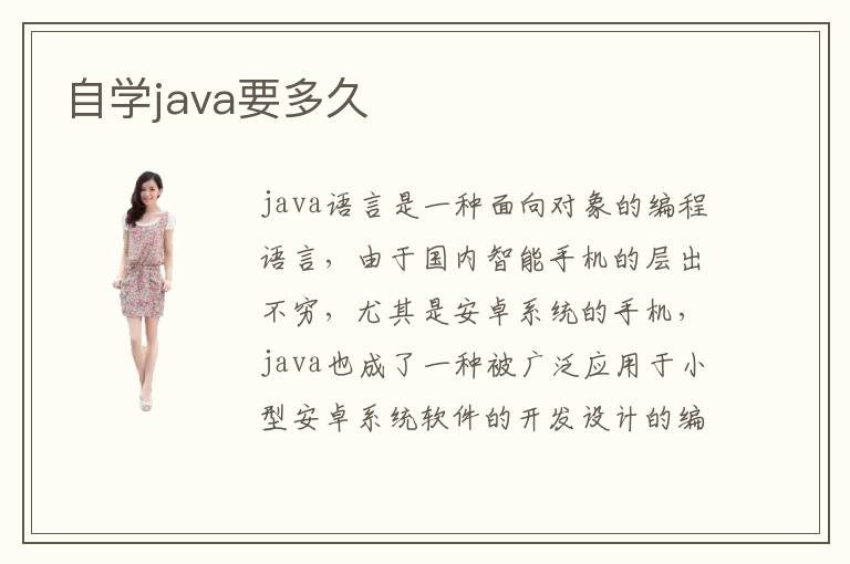 java語(yǔ)言是一種面向?qū)ο蟮木幊陶Z(yǔ)言,由于國(guó)內(nèi)智能手機(jī)的層出不窮,尤其是安卓系統(tǒng)的手機(jī),java也成了一種被廣泛應(yīng)用于小型安卓系統(tǒng)軟件的開(kāi)發(fā)設(shè)計(jì)的編程語(yǔ)言,當(dāng)然各大企業(yè)web網(wǎng)站的建設(shè)也離不開(kāi)它。java的學(xué)習(xí)方式有很多,對(duì)于有一些編程語(yǔ)言基礎(chǔ)的學(xué)員,可以選擇通過(guò)閱讀java相關(guān)書(shū)籍資料和網(wǎng)絡(luò)視頻教程自學(xué)來(lái)學(xué)習(xí),自學(xué)的時(shí)間控制比較自由,然而需要耗費(fèi)的時(shí)間卻比較多。那么,自學(xué)java要多久時(shí)間呢?