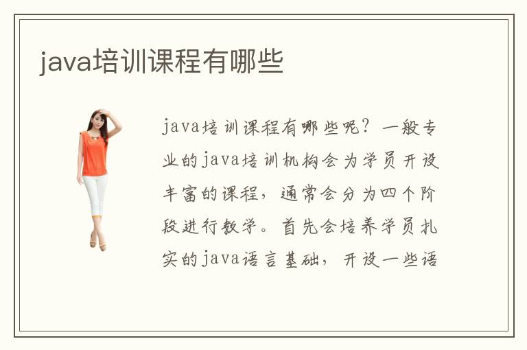 java培訓(xùn)課程有哪些呢?一般專業(yè)的java培訓(xùn)機(jī)構(gòu)會(huì)為學(xué)員開設(shè)豐富的課程,通常會(huì)分為四個(gè)階段進(jìn)行教學(xué)。首先會(huì)培養(yǎng)學(xué)員扎實(shí)的java語(yǔ)言基礎(chǔ),開設(shè)一些語(yǔ)法,算法的基礎(chǔ)課程,讓學(xué)員從基礎(chǔ)知識(shí)點(diǎn)抓起。其次,由淺入深,慢慢開始進(jìn)行簡(jiǎn)單的應(yīng)用程序編寫設(shè)計(jì),提高學(xué)員編寫代碼的速度和質(zhì)量。最后讓學(xué)生投入到企業(yè)項(xiàng)目的編程過(guò)程中,潛移默化中增長(zhǎng)學(xué)員的實(shí)踐經(jīng)驗(yàn)。