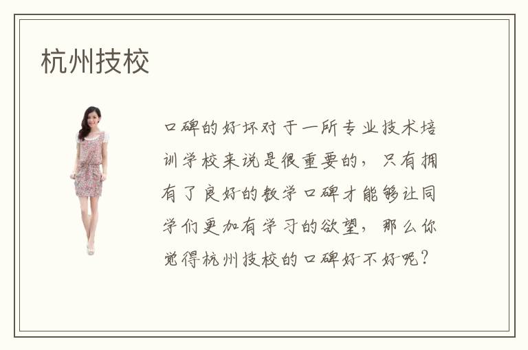 杭州技校是一所專業(yè)的以“技術(shù)型人才”培訓(xùn)為重點(diǎn)的學(xué)校,成立至今多年已經(jīng)順利成為了廣大杭州市民心目中最靠譜的技術(shù)學(xué)習(xí)平臺(tái),杭州技校憑借自己專業(yè)化的教學(xué)培訓(xùn)使得學(xué)員們的學(xué)習(xí)效率有了很大的提升。對(duì)于技術(shù)培訓(xùn)學(xué)校最初人們的印象并不是特別好,認(rèn)為技術(shù)培訓(xùn)學(xué)校的教學(xué)課程安排并不適合學(xué)員去學(xué)習(xí),而杭州技校的成立恰恰改變了大家對(duì)于傳統(tǒng)技術(shù)培訓(xùn)學(xué)校的看法。