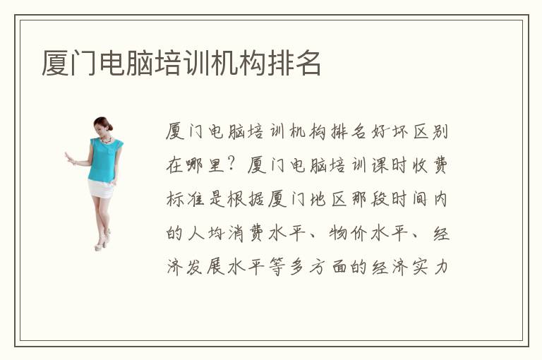 廈門電腦培訓排名是征求廣大廈門市民的意見,由廈門計算機培訓機構官網(wǎng)發(fā)起的投票活動。將各家專業(yè)的計算機培訓機構的優(yōu)缺點進行比較,是反復對比、不斷篩選而得出的結果,是各位想要學習計算機專業(yè)的學生,在選擇應該去哪家培訓機構接受教學時的重要參考依據(jù)。選擇靠譜的培訓機構對于大家來說,就像是高考填報志愿一樣很重要,將間接決定你的未來就業(yè)問題。