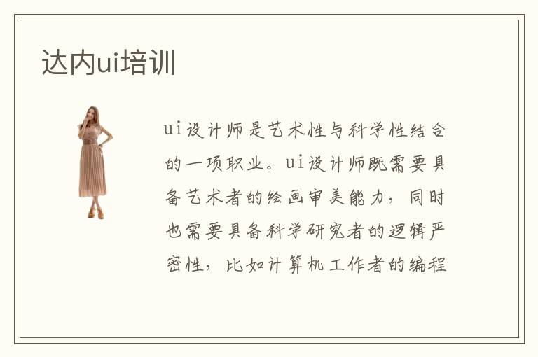 ui設(shè)計(jì)是一個(gè)新型職業(yè),ui設(shè)計(jì)師需要對(duì)軟件使用者、軟件使用環(huán)境、軟件使用方位進(jìn)行相應(yīng)地定位,并且當(dāng)設(shè)計(jì)出了界面的試用時(shí),我們也需要把所有的試用人員召集,進(jìn)行一個(gè)集中的調(diào)研。達(dá)內(nèi)科技ui設(shè)計(jì)師培訓(xùn)的培訓(xùn)項(xiàng)目有哪些?達(dá)內(nèi)科技ui設(shè)計(jì)師培訓(xùn)學(xué)校提供了哪些優(yōu)質(zhì)的教育資源?達(dá)內(nèi)科技ui設(shè)計(jì)師培訓(xùn)機(jī)構(gòu)主要的實(shí)踐項(xiàng)目有多少市場(chǎng)價(jià)值?