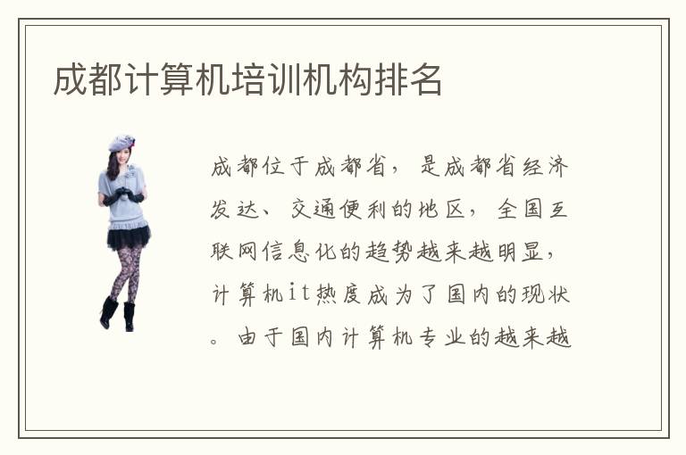 信息化的發(fā)展是國(guó)家的大勢(shì)所向,國(guó)內(nèi)的計(jì)算機(jī)市場(chǎng)對(duì)于計(jì)算機(jī)專(zhuān)業(yè)人才的需求量,仍然存在著很大的缺口。然而并不是所有學(xué)習(xí)計(jì)算機(jī)專(zhuān)業(yè)的學(xué)生都可以找到一份滿(mǎn)意的工作,要想在計(jì)算機(jī)行業(yè)找到一份待遇優(yōu)厚的工作,不斷提升自身的it技術(shù)能力,是最關(guān)鍵的一個(gè)地方。進(jìn)入專(zhuān)業(yè)的計(jì)算機(jī)培訓(xùn)機(jī)構(gòu)接受教育,可以用最高效率的方式提升能力,成都計(jì)算機(jī)培訓(xùn)機(jī)構(gòu)排名你知道嗎?