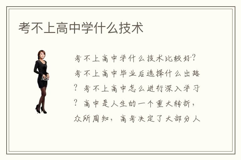 考不上高中學(xué)什么技術(shù)比較好?考不上高中畢業(yè)后選擇什么出路?考不上高中怎么進(jìn)行深入學(xué)習(xí)?高中是人生的一個(gè)重大轉(zhuǎn)折,眾所周知,高考決定了大部分人的未來人生出路,但是不僅僅要把握住高考這個(gè)方向,如果沒有考上高中就應(yīng)該提早做好新的準(zhǔn)備,比如想好自己應(yīng)該學(xué)習(xí)什么樣的技術(shù)才能讓自己有好的出路?考不上高中后學(xué)生們應(yīng)該根據(jù)時(shí)代選擇熱門的專業(yè)。