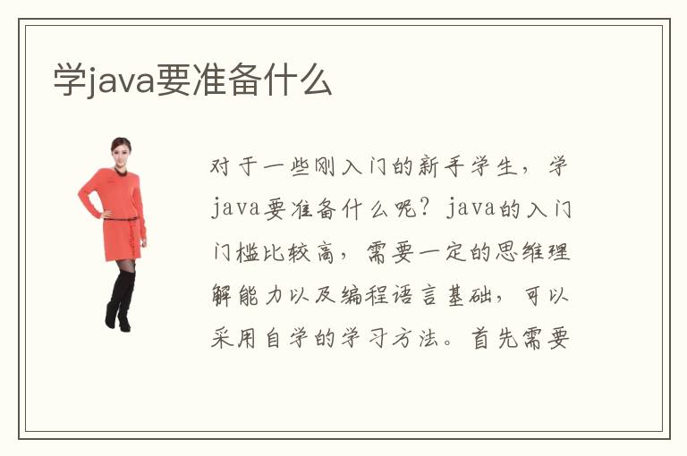 對(duì)于一些剛?cè)腴T的新手學(xué)生,學(xué)java要準(zhǔn)備什么呢?java的入門門檻比較高,需要一定的思維理解能力以及編程語(yǔ)言基礎(chǔ),可以采用自學(xué)的學(xué)習(xí)方法。首先需要去網(wǎng)上搜索一些java的入門視頻來(lái)學(xué)習(xí),了解java的基礎(chǔ)語(yǔ)法以及常用的編輯工具。其次再去找一些java相關(guān)的書(shū)籍資料來(lái)學(xué)習(xí),從基礎(chǔ)的到高級(jí)的,由淺入深的學(xué)習(xí)。最后可以嘗試一些小應(yīng)用的編程設(shè)計(jì)。