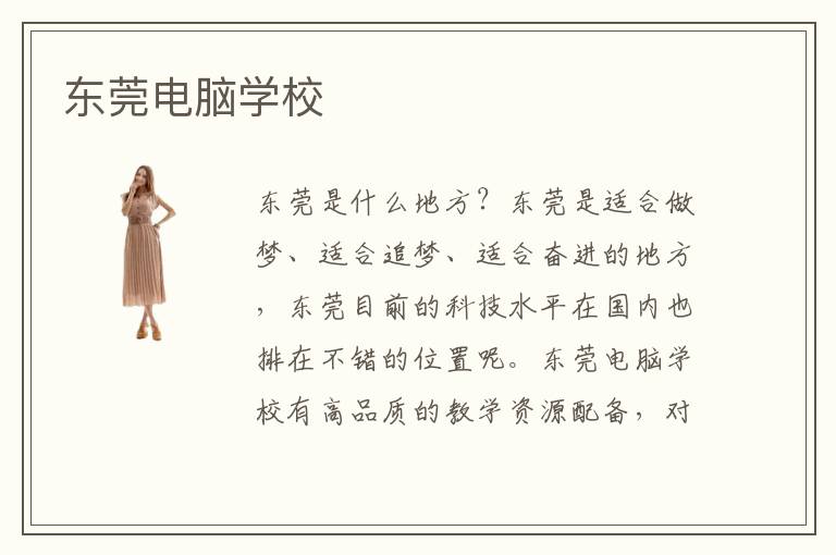 東莞是什么地方?東莞是適合做夢、適合追夢、適合奮進的地方,東莞目前的科技水平在國內(nèi)也排在不錯的位置呢。東莞電腦學校有高品質(zhì)的教學資源配備,對于教育事業(yè)也是得心應手。東莞電腦計算機行業(yè)發(fā)展現(xiàn)狀情況良好并且持續(xù)出現(xiàn)呈上升趨勢。東莞計算機培訓機構(gòu)排名可信嘛?如何選擇一個優(yōu)秀的東莞計算機學校是保證學好計算機的前提,因此,要好好選擇東莞電腦學校。