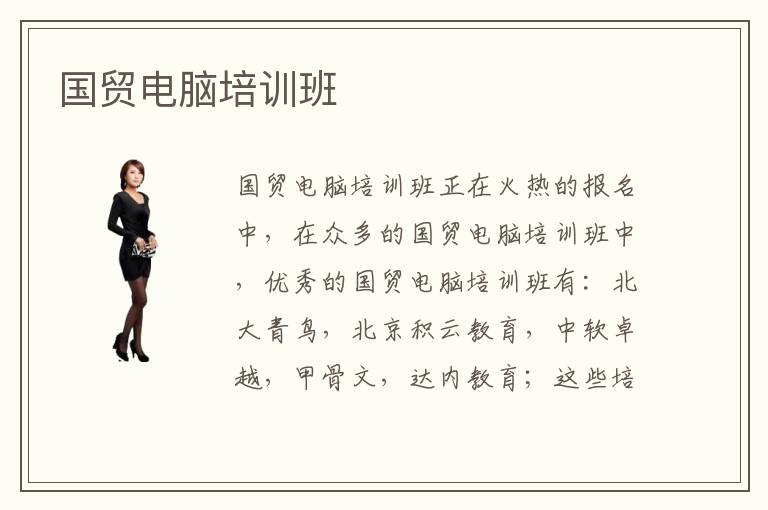 國貿(mào)電腦培訓(xùn)班正在火熱的報(bào)名中,在眾多的國貿(mào)電腦培訓(xùn)班中,優(yōu)秀的國貿(mào)電腦培訓(xùn)班有:北大青鳥,北京積云教育,中軟卓越,甲骨文,達(dá)內(nèi)教育;這些培訓(xùn)機(jī)構(gòu)在專業(yè)人士通過用戶評(píng)價(jià),設(shè)備配置,教學(xué)質(zhì)量等幾個(gè)方面綜合評(píng)估得出的。這個(gè)考察,還是比較具有專業(yè)性的。那么這些國貿(mào)電腦培訓(xùn)班辦學(xué)特色是什么呢?培訓(xùn)機(jī)構(gòu)注重提升教師的授課質(zhì)量和學(xué)員的學(xué)習(xí)效率的提高;另外注重培養(yǎng)職業(yè)技能,和專業(yè)理論知識(shí)的教學(xué)。在實(shí)際項(xiàng)目實(shí)踐上,學(xué)校也盡量促成一些實(shí)際項(xiàng)目,讓學(xué)員能夠充分的享受項(xiàng)目資源,進(jìn)一步增長經(jīng)驗(yàn)教訓(xùn),拓寬往后的職業(yè)道路。另外,這些國貿(mào)電腦培訓(xùn)班的面向人群是上班族,學(xué)生,退伍軍人等,可以說是面向社會(huì)所有階層招生的,只要你對(duì)這個(gè)專業(yè)感興趣并且愿意為之而付出努力,那么就勇敢的向前走吧。
