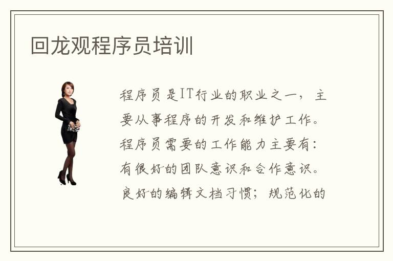 程序員是IT行業(yè)的職業(yè)之一,主要從事程序的開發(fā)和維護(hù)工作。程序員需要的工作能力主要有:有很好的團(tuán)隊(duì)意識(shí)和合作意識(shí)。良好的編輯文檔習(xí)慣;規(guī)范化的編寫代碼習(xí)慣,測(cè)試軟件的能力和習(xí)慣,經(jīng)常性的自我反省和學(xué)習(xí)總結(jié)能力,時(shí)刻保持新鮮感和好奇心??梢哉f,程序員不僅僅是一個(gè)技術(shù)層面的活兒,還需要很多的能力的結(jié)合才可以有好的程序開發(fā)成果?;佚堄^程序員培訓(xùn)正是培養(yǎng)優(yōu)秀程序員的地方,這些回龍觀程序員培訓(xùn)機(jī)構(gòu)具體有:北大青鳥,北京積云教育,中軟卓越。這幾所回龍觀程序員培訓(xùn)機(jī)構(gòu)教學(xué)目標(biāo)就是培養(yǎng)能力和職業(yè)素養(yǎng)出色的程序員。當(dāng)下回龍觀程序員薪資待遇還是非常不錯(cuò)的,因?yàn)樵诒本孕劫Y在原本的基礎(chǔ)上,還會(huì)再高一些,大致在10-20k之間。