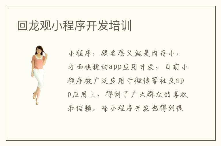 小程序,顧名思義就是內(nèi)存小,方面快捷的app應(yīng)用開發(fā),目前小程序被廣泛應(yīng)用于微信等社交app應(yīng)用上,得到了廣大群眾的喜歡和信賴。而小程序開發(fā)也得到很好的發(fā)展和升值空間。目前已經(jīng)有不少人開始從事于小程序的開發(fā)工作,市面上也開始出現(xiàn)關(guān)于小程序開發(fā)的培訓(xùn)機(jī)構(gòu)。這里推薦回龍觀小程序開發(fā)培訓(xùn)機(jī)構(gòu),其中優(yōu)秀的回龍觀小程序開發(fā)培訓(xùn)機(jī)構(gòu)有:北京積云教育,北大青鳥,中軟卓越,兄弟連和甲骨文。這些回龍觀小程序開發(fā)培訓(xùn)機(jī)構(gòu)都是正規(guī)且專業(yè)的培訓(xùn)機(jī)構(gòu),從事it類培訓(xùn)多年,開設(shè)各類型的it專業(yè)培訓(xùn)班,培訓(xùn)成員成千上萬,有很好的口碑和群眾基礎(chǔ),在小程序開發(fā)這一塊,它們具備專業(yè)的培訓(xùn)團(tuán)隊(duì),優(yōu)質(zhì)的項(xiàng)目資源,不斷升級(jí)的硬件設(shè)備和豐富的培訓(xùn)經(jīng)驗(yàn)。相信一定是一個(gè)不錯(cuò)的體驗(yàn)。接著說一說當(dāng)下回龍觀小程序開發(fā)就業(yè)前景如何,在這一塊,對(duì)軟件開發(fā)工程師的需求還是比較大的,有很大的就業(yè)空間和不錯(cuò)的就業(yè)待遇。