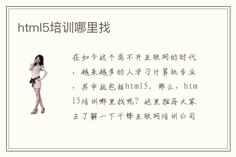在如今這個離不開互聯(lián)網(wǎng)的時代,越來越多的人學習計算機專業(yè),其中就包括html5。那么,html5培訓哪里找呢?這里推薦大家去了解一下千鋒互聯(lián)網(wǎng)培訓公司,這是一家專業(yè)的正規(guī)的培訓機構(gòu),是學員學習html5,交流學習中的問題的好平臺,承載了千千萬萬學子成為網(wǎng)頁設計師的夢想。想要了解更多關(guān)于千鋒互聯(lián)網(wǎng)培訓公司信息嗎?進入千鋒官網(wǎng)在線,不懂的問題可以咨詢在線老師哦。
