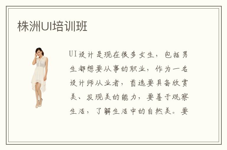 株洲UI培訓(xùn)班是一家專門為培養(yǎng)優(yōu)秀的UI設(shè)計(jì)師,而成立的專業(yè)UI設(shè)計(jì)培訓(xùn)機(jī)構(gòu)。株洲UI培訓(xùn)班擁有最高水準(zhǔn)的培訓(xùn)課程,通過“一對(duì)一”的名師教學(xué)模式,讓在校的所有學(xué)員都可以學(xué)好UI界面設(shè)計(jì)。風(fēng)趣幽默的課堂氛圍,也使得學(xué)員們可以在抵抗就業(yè)壓力的同時(shí),享受一下在輕松氛圍中學(xué)習(xí)的樂趣。株洲UI培訓(xùn)班的培訓(xùn)課程主要有哪些呢?想要了解的同學(xué)們可以關(guān)注株洲UI培訓(xùn)班的官網(wǎng)了解詳情。