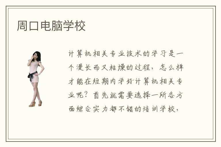 計算機相關(guān)專業(yè)技術(shù)的學(xué)習(xí)是一個漫長而又枯燥的過程,怎么樣才能在短期內(nèi)學(xué)好計算機相關(guān)專業(yè)呢?首先就需要選擇一所各方面綜合實力都不錯的培訓(xùn)學(xué)校,周口電腦學(xué)校開設(shè)至今多年已經(jīng)成功培養(yǎng)了很多計算機相關(guān)專業(yè)的技術(shù)型人才,從周口電腦學(xué)校畢業(yè)的學(xué)生不僅擁有高超的計算機專業(yè)技術(shù)水平,并且具備豐富的計算機項目實踐經(jīng)驗,這都是計算機行業(yè)中精英人才所必須要具備的。