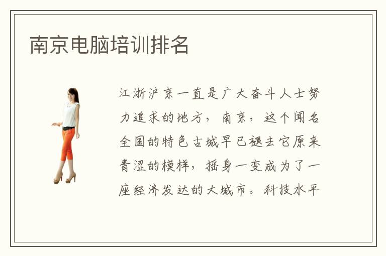 江浙滬京一直是廣大奮斗人士努力追求的地方,南京,這個聞名全國的特色古城早已褪去它原來青澀的模樣,搖身一變成為了一座經(jīng)濟(jì)發(fā)達(dá)的大城市??萍妓讲粩喟l(fā)展,南京電腦培訓(xùn)學(xué)校也越來越多,為區(qū)分市場上魚龍混雜的培訓(xùn)機(jī)構(gòu),網(wǎng)友專業(yè)綜合各電腦培訓(xùn)學(xué)校情況對南京電腦培訓(xùn)進(jìn)行排名評定,南京地區(qū)專業(yè)的電腦培訓(xùn)機(jī)構(gòu)有哪些?南京計算機(jī)電腦培訓(xùn)收費情況是什么?