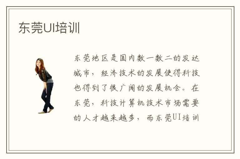 東莞的經(jīng)濟水平在國內(nèi)都是數(shù)一數(shù)二的,眾所周知東莞是一個“快節(jié)奏”生活的經(jīng)濟建設(shè)一線大城市,當然想要在東莞找到一份各方面薪資待遇都很滿意的工作也是不容易的。UI設(shè)計作為目前最熱門的計算機專業(yè)之一,加入到UI設(shè)計學習隊伍中去的人也越來越多。那么,為了能夠讓更多的同學方便學習、交流UI設(shè)計專業(yè)技術(shù),特別開設(shè)了很多東莞UI培訓機構(gòu),那么你知道哪所東莞UI培訓機構(gòu)靠譜呢?