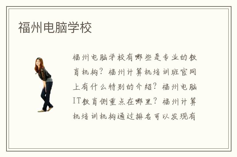 福州電腦學(xué)校有哪些是專業(yè)的教育機(jī)構(gòu)?福州計(jì)算機(jī)培訓(xùn)班官網(wǎng)上有什么特別的介紹?福州電腦IT教育側(cè)重點(diǎn)在哪里?福州計(jì)算機(jī)培訓(xùn)機(jī)構(gòu)通過排名可以發(fā)現(xiàn)有不少優(yōu)秀專業(yè)而且性價(jià)比高的電腦培訓(xùn)班,在這些培訓(xùn)機(jī)構(gòu)中心里,因?yàn)槠浣逃齻?cè)重點(diǎn)在于未來是就業(yè)任務(wù),所以我們能夠?qū)W到的不僅僅有書本上的理論知識(shí),還能夠?qū)W習(xí)到有助于自身發(fā)展的實(shí)踐操作。