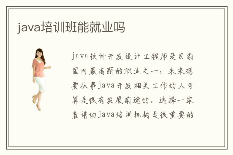 java軟件開發(fā)設(shè)計(jì)工程師是目前國內(nèi)最高薪的職業(yè)之一,未來想要從事java開發(fā)相關(guān)工作的人可算是很有發(fā)展前途的。選擇一家靠譜的java培訓(xùn)機(jī)構(gòu)是很重要的,高端的品牌,一流的教學(xué)質(zhì)量,強(qiáng)大的師資力量,濃郁的學(xué)習(xí)氛圍等等,都能夠讓各位學(xué)員的學(xué)習(xí)道路更加通暢。那么,java培訓(xùn)班能就業(yè)嗎?這個(gè)問題的答案自然是能,培訓(xùn)機(jī)構(gòu)還會貼心為學(xué)員開設(shè)面試指導(dǎo)課程。