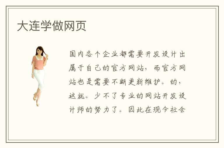 國內(nèi)各個(gè)企業(yè)都需要開發(fā)設(shè)計(jì)出屬于自己的官方網(wǎng)站,而官方網(wǎng)站也是需要不斷更新維護(hù)。的,這就。少不了專業(yè)的網(wǎng)站開發(fā)設(shè)計(jì)師的努力了。因此在現(xiàn)今社會學(xué)好網(wǎng)站開發(fā)設(shè)計(jì)專業(yè)是具有廣闊發(fā)展前景的,那么在大連學(xué)做網(wǎng)頁的難度大不大呢?網(wǎng)頁開發(fā)設(shè)計(jì)與計(jì)算機(jī)編程技術(shù)有一定的關(guān)聯(lián),對于計(jì)算機(jī)編程大家都是很頭疼的,網(wǎng)頁開發(fā)設(shè)計(jì)專業(yè)的學(xué)習(xí)難度會不會很大呢?