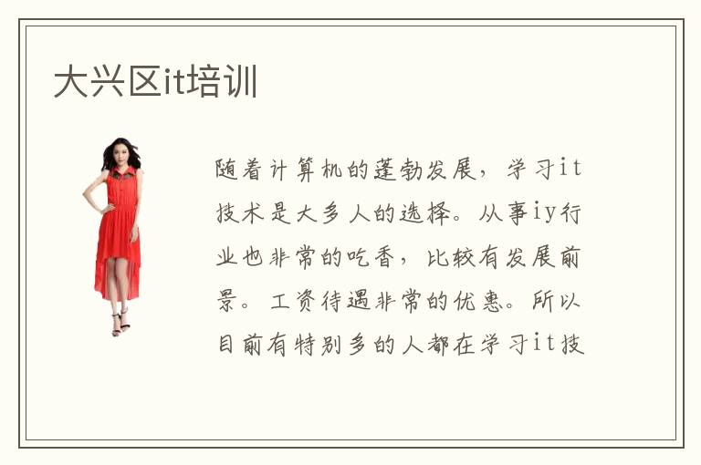 隨著計(jì)算機(jī)的蓬勃發(fā)展,學(xué)習(xí)it技術(shù)是大多人的選擇。從事iy行業(yè)也非常的吃香,比較有發(fā)展前景。工資待遇非常的優(yōu)惠。所以目前有特別多的人都在學(xué)習(xí)it技術(shù)。學(xué)習(xí)it技術(shù)最快速的方法就是到專業(yè)的培訓(xùn)機(jī)構(gòu)去學(xué)習(xí)。大興區(qū)it培訓(xùn)it培訓(xùn)機(jī)構(gòu)就都是專業(yè)的培訓(xùn)it技術(shù)方面的培訓(xùn)機(jī)構(gòu)。很多人在這里都學(xué)到了關(guān)于it技術(shù)的專業(yè)知識(shí)。而且大興區(qū)it培訓(xùn)機(jī)構(gòu)里面的培訓(xùn)設(shè)施非常的先進(jìn)。在這里可以體驗(yàn)到不同的學(xué)習(xí)過程,積累非常多的學(xué)習(xí)經(jīng)驗(yàn)。很多選擇到大興區(qū)it培訓(xùn)機(jī)構(gòu)學(xué)習(xí)的學(xué)員,都非常的放心。在這里,他們也都的確學(xué)到了非常專業(yè)的知識(shí)。在找工作方面也有著更多的工作選擇。大興區(qū)it培訓(xùn)班培訓(xùn)經(jīng)驗(yàn)豐富,所以這里的學(xué)員都可以得到非常不錯(cuò)的學(xué)習(xí)體驗(yàn)。輕輕松松就可以學(xué)到專業(yè)的知識(shí)。