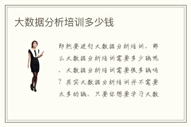 即然要進(jìn)行大數(shù)據(jù)分析培訓(xùn)。那么大數(shù)據(jù)分析培訓(xùn)需要多少錢呢。大數(shù)據(jù)分析培訓(xùn)需要很多錢嗎?其實(shí)大數(shù)據(jù)分析培訓(xùn)并不需要太多的錢。只要你想要學(xué)習(xí)大數(shù)據(jù)分析技術(shù)。大數(shù)據(jù)分析培訓(xùn)的這些錢都可以付得起。因?yàn)榇髷?shù)據(jù)分析培訓(xùn),需要付多少錢,都是根據(jù)你的學(xué)習(xí),選擇的時(shí)間的長(zhǎng)短來(lái),制定的。你在大數(shù)據(jù)分析培訓(xùn)學(xué)習(xí)的時(shí)間越久,他們收的錢肯定就要多一些。但是他們的目的并不是,收取你的錢。大數(shù)據(jù)分析培訓(xùn)主要就是為了幫助我們更好的去學(xué)習(xí)大數(shù)據(jù)分析技術(shù)。所以說(shuō)花一點(diǎn)錢無(wú)所謂的。只要能把大數(shù)據(jù)分析技術(shù)學(xué)會(huì)不就可以嘛。再說(shuō)了,大數(shù)據(jù)分析培訓(xùn)真的不需要花太多的錢。有許多機(jī)構(gòu)都打著專業(yè)的名義來(lái)騙取學(xué)生的錢財(cái)。只要你認(rèn)真的區(qū)分開(kāi)來(lái),并不會(huì)花一些冤枉錢。