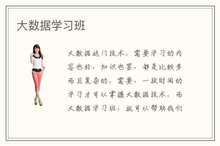 大數(shù)據(jù)這門技術(shù)。需要學(xué)習(xí)的內(nèi)容也好,知識也罷,都是比較多而且復(fù)雜的。需要,一段時(shí)間的學(xué)習(xí)才可以掌握大數(shù)據(jù)技術(shù)。而大數(shù)據(jù)學(xué)習(xí)班,就可以幫助我們,快速的,學(xué)會(huì)大數(shù)據(jù)技術(shù)。在大數(shù)據(jù)學(xué)習(xí)班里面,學(xué)習(xí)環(huán)境還是比較輕松一點(diǎn)的。比起自己悶頭苦學(xué)。不如到大數(shù)據(jù)學(xué)習(xí)班和大家集體學(xué)習(xí),要學(xué)得快一些。而且在大數(shù)據(jù)學(xué)習(xí)班里面學(xué)習(xí)大數(shù)據(jù)技術(shù),效率也非常的高。也就是說大數(shù)據(jù)學(xué)習(xí)班可以保質(zhì)保量的,讓你學(xué)會(huì)大數(shù)據(jù)技術(shù)。只有真正的學(xué)會(huì),大數(shù)據(jù)技術(shù),才可以從事大數(shù)據(jù)相關(guān)行業(yè)的工作。也能夠?qū)ψ约旱挠萌藛挝徽f,自己是大數(shù)據(jù)方面專業(yè)的人才。大數(shù)據(jù)學(xué)習(xí)班有很多呀。挑選其中的,一個(gè)大數(shù)據(jù)學(xué)習(xí)班,就能幫助你學(xué)的快一些。在大數(shù)據(jù)學(xué)習(xí)班里面學(xué)習(xí)大數(shù)據(jù)一天。比你自己在家里學(xué)習(xí)一個(gè)月,要學(xué)的內(nèi)容又多又專業(yè)。