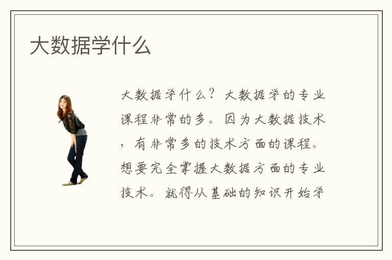 大數(shù)據(jù)學(xué)什么?大數(shù)據(jù)學(xué)的專業(yè)課程非常的多。因?yàn)榇髷?shù)據(jù)技術(shù),有非常多的技術(shù)方面的課程。想要完全掌握大數(shù)據(jù)方面的專業(yè)技術(shù)。就得從基礎(chǔ)的知識開始學(xué)起。大數(shù)據(jù)學(xué)的課程豐富多彩。想要快速的掌握大數(shù)據(jù)技術(shù)就得,靜下心來,慢慢的去學(xué)習(xí)這些課程。所以說大數(shù)據(jù)學(xué)的課程非常的多。不能著急。需要一點(diǎn)點(diǎn)從基礎(chǔ)知識開始學(xué)習(xí)。只有扎穩(wěn)基礎(chǔ)的知識,才可以更好的掌握大數(shù)據(jù)技術(shù)。大數(shù)據(jù)學(xué)的課程,都是一些有實(shí)際用途的。越來越多的人都在學(xué)習(xí)大數(shù)據(jù)技術(shù)。但是大部分人都沒有關(guān)于大數(shù)據(jù)技術(shù)方面的基礎(chǔ)知識。 所以都需要從頭學(xué)習(xí)。從最簡單的一些操作開始學(xué)習(xí)。慢慢積累才可以,學(xué)會(huì)大數(shù)據(jù)方面的專業(yè)知識在就業(yè)方面有著非常不錯(cuò)的,更多的崗位方面選擇。