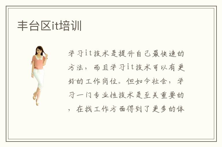 學(xué)習(xí)it技術(shù)是提升自己最快速的方法,而且學(xué)習(xí)it技術(shù)可以有更好的工作崗位。但如今社會(huì),學(xué)習(xí)一門(mén)專業(yè)性技術(shù)是至關(guān)重要的,在找工作方面得到了更多的體現(xiàn)。如果有一門(mén)專業(yè)的技術(shù),就可以找到非常理想的工作崗位,而且工資待遇極高。所以,很多人都在學(xué)習(xí)it技術(shù),而且是it技術(shù)最好的方法就是到豐臺(tái)區(qū)it培訓(xùn)it培訓(xùn)機(jī)構(gòu)學(xué)習(xí)。豐臺(tái)區(qū)it培訓(xùn)機(jī)構(gòu)里面的教師都是非常專業(yè)的教師,在教學(xué)方面有著獨(dú)特的教學(xué)方式,針對(duì)不同的學(xué)生制定不同的教學(xué)方案。讓每一位學(xué)生在這里都可以學(xué)到非常專業(yè)的it技術(shù)。而且豐臺(tái)區(qū)it培訓(xùn)機(jī)構(gòu)有著非常多的培養(yǎng)人才方面的經(jīng)驗(yàn)。培養(yǎng)出的人才非常的多。所以在豐臺(tái)區(qū)it培訓(xùn)機(jī)構(gòu)學(xué)習(xí)的話,可以放心。一定可以學(xué)到非常多的專業(yè)知識(shí)。