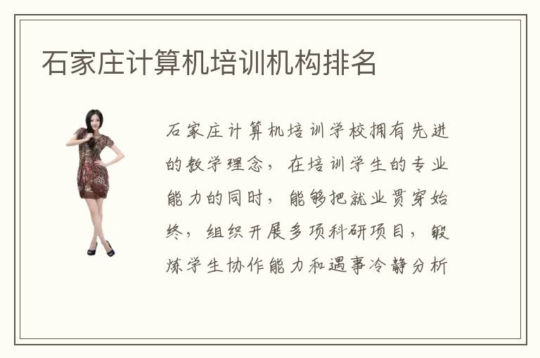 石家莊計(jì)算機(jī)培訓(xùn)計(jì)算機(jī)培訓(xùn)學(xué)校擁有先進(jìn)的教學(xué)理念,在培訓(xùn)學(xué)生的專(zhuān)業(yè)能力的同時(shí),能夠把就業(yè)貫穿始終,組織開(kāi)展多項(xiàng)科研項(xiàng)目,鍛煉學(xué)生協(xié)作能力和遇事冷靜分析的能力。石家莊計(jì)算機(jī)培訓(xùn)機(jī)構(gòu)排名情況能夠及時(shí)更新嘛?石家莊計(jì)算機(jī)培訓(xùn)口碑情況怎么樣?石家莊學(xué)習(xí)計(jì)算機(jī)IT有前途嗎?目前來(lái)看,計(jì)算機(jī)IT依然是國(guó)內(nèi)數(shù)一數(shù)二的熱門(mén)專(zhuān)業(yè),學(xué)好計(jì)算機(jī)為將來(lái)的就業(yè)提供了保證。