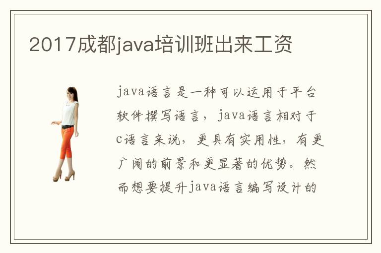 java語言是一種可以運用于平臺軟件撰寫語言,java語言相對于c語言來說,更具有實用性,有更廣闊的前景和更顯著的優(yōu)勢。然而想要提升java語言編寫設(shè)計的技能最有效的方法就是報名參加一個java培訓(xùn)班,而想要提升java編寫設(shè)計的技能也就是為了今后能找到一個更好的工作崗位。那么,2018成都java培訓(xùn)班出來工資高嗎?2018成都java培訓(xùn)班出來工資多少呢?