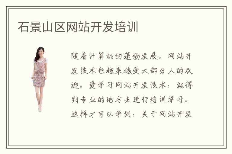 隨著計算機的蓬勃發(fā)展。網(wǎng)站開發(fā)技術(shù)也越來越受大部分人的歡迎。愛學(xué)習(xí)網(wǎng)站開發(fā)技術(shù),就得到專業(yè)的地方去進行培訓(xùn)學(xué)習(xí)。這樣才可以學(xué)到,關(guān)于網(wǎng)站開發(fā)方面的專業(yè)知識。石景山區(qū)網(wǎng)站開發(fā)培訓(xùn)班,就都是一些非常專業(yè)的培訓(xùn)班。在石景山區(qū)網(wǎng)站開發(fā)培訓(xùn)班里面,學(xué)習(xí)網(wǎng)站開發(fā)技術(shù),可以快速的掌握網(wǎng)站開發(fā)技術(shù),專業(yè)知識。很多在石景山區(qū)網(wǎng)站開發(fā)培訓(xùn),班里面學(xué)習(xí)過的學(xué)員們,現(xiàn)在都有著不錯的工作崗位。他們都非常感謝,曾經(jīng)在,石景山區(qū),網(wǎng)站開發(fā)培訓(xùn)班學(xué)習(xí)?,F(xiàn)今社會最重要的就是技術(shù),而比較受歡迎的技術(shù)就是網(wǎng)站開發(fā)技術(shù)。網(wǎng)站開發(fā)技術(shù),非常的吃香。很多人都在學(xué)習(xí)。所以學(xué)習(xí)網(wǎng)站開發(fā)技術(shù)也非常的有前景。而石景山區(qū)網(wǎng)站開發(fā)培訓(xùn)班就是專業(yè)的,培養(yǎng),網(wǎng)站開發(fā)方面人才的培訓(xùn)班。